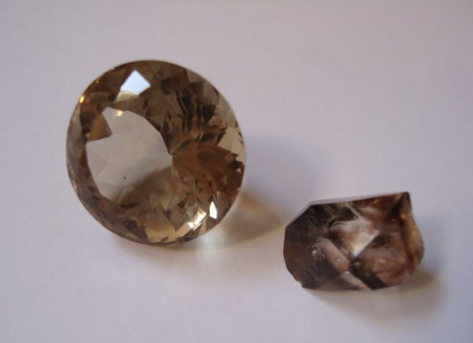 Поддельный камень раухтопаза не обладает лучистой поверхностью и глубиной цвета.