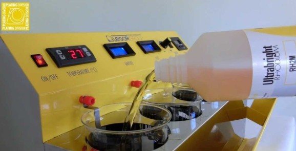 Для данного процесса необходимы соли, которые водорастворяют драгоценный металл, но чтобы облегчить работу при родировании, давно уже стали выпускать готовый материал: концентрированный раствор сульфата родия. Раствор необходимо смешать в нужной пропорции с водой и приступать к гальваническому процессу.