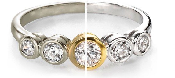 В этом случае мастера придерживаются такой же технологии, так и при работе с белым золотом. Главное отличие заключает в частичном нанесении родия на поверхность изделия. Дело в том, что со временем основной металл начнет постепенно проступать через дополнительный слой. В результате испортится внешний вид украшения, нарушится эстетика.