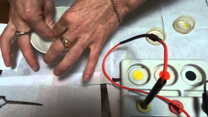 - Пропустить через раствор электрический ток. Он спровоцирует химическую реакцию, в процессе которой выделится родий. Он ляжет на изделие тонким слоем и полностью его покроет.