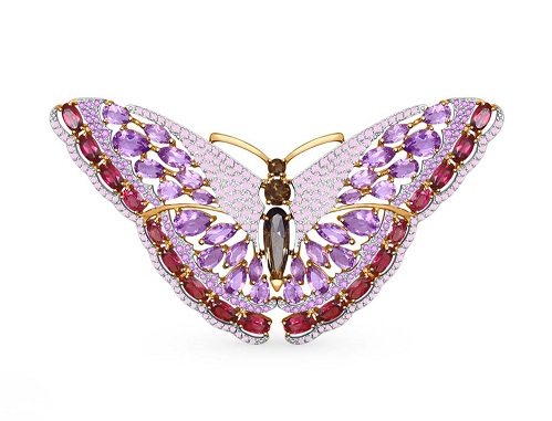 Золотая брошь с родолитами, раухтопазами, аметистом и фианитами (перейти в каталог SUNLIGHT)