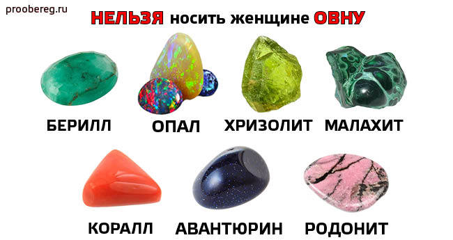 Несмотря на большой выбор самоцветов, не все камни Овна женщины можно выбирать. Желательно избегать: