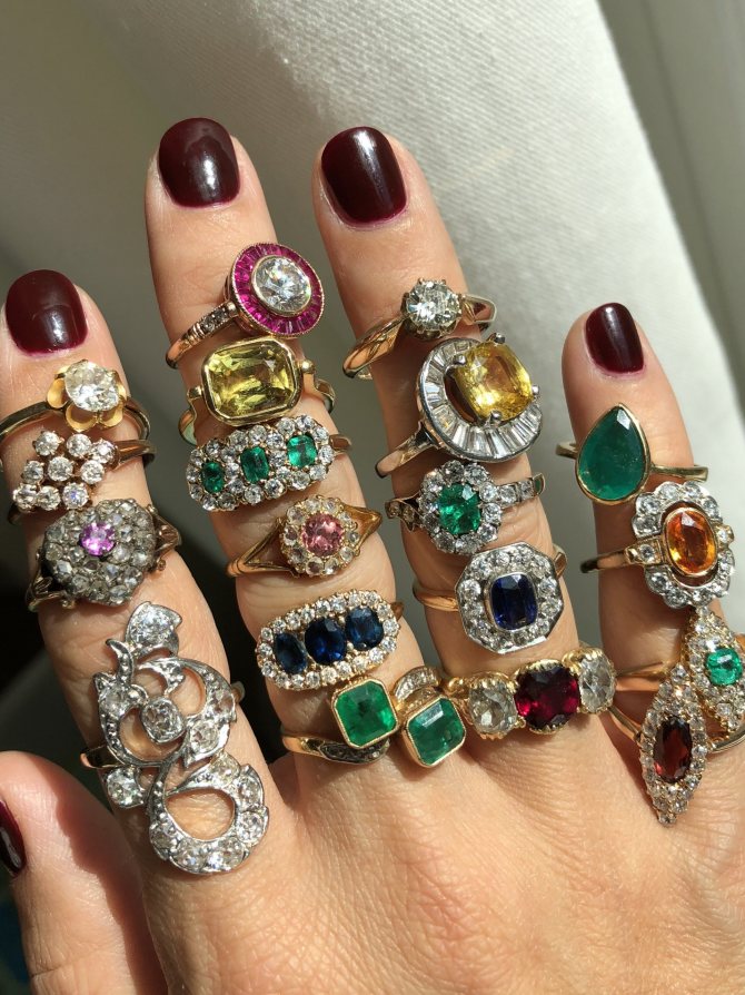 - Если хочется надевать украшения с разными камнями (например, кольца на одну руку), проверяют совместимость камушков.