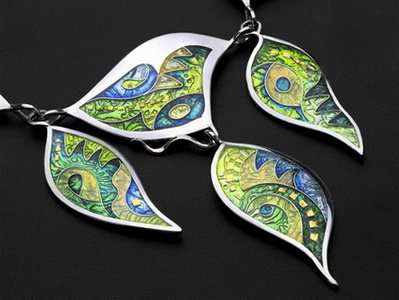 «Я всегда любила включать в свою работу яркий цвет и свет, поэтому, когда обнаружила красоту перегородчатой эмали, меня зацепило. Моя работа включает в себя цвет, свет и баланс — будь то абстрактный или образный. Я нахожусь под влиянием всех великолепных украшений прошлого, но постараюсь дать им современный вид».