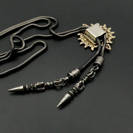 - в рокерском стиле – байкерские цепи обычно массивны, а если это тонкие цепочки, то они идут в несколько рядов. Приветствуются черненый металл, наличие шипов и черепов вместо обычных звеньев. Золотыми рокерские цепи бывают крайне редко. Предпочтение отдается стали и серебру;