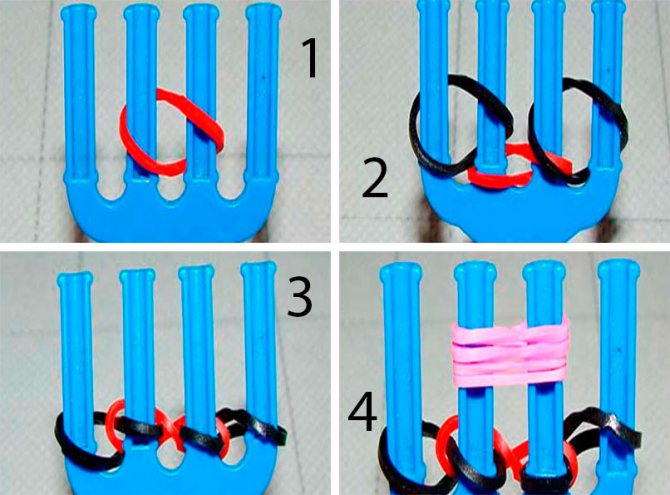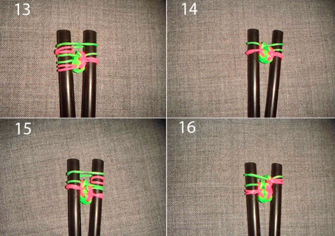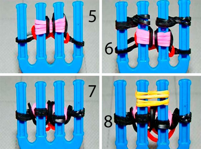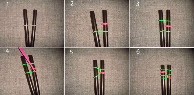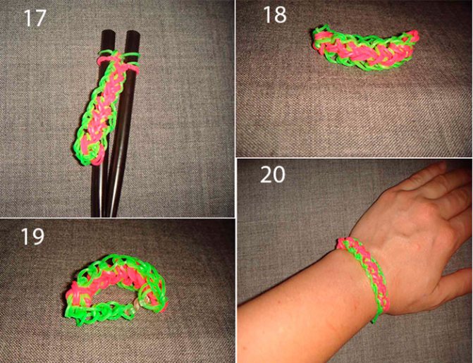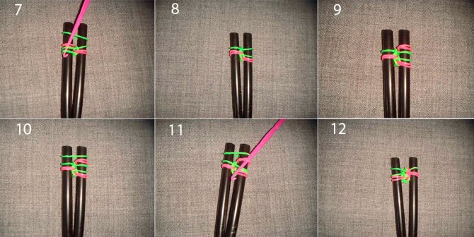 - Шаги 3,4,5 следует повторить до достижения необходимой длины браслета.