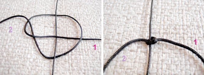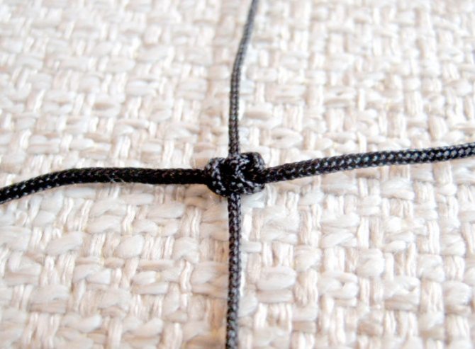 1) Самый распространенный узел в плетеных браслетах – двойной плоский узел.