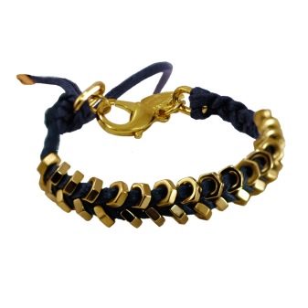 Чтобы создать крепкую и необычную модель, достаточно запастись не только шнурками, но и гайками. Такое украшение смотрится ярко, массивно и модно. Браслет с гайками позволит добавить образу дерзости и бунтарства.