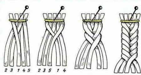 5) Плетение разнообразных косичек из 3, 4, 5 и 6 шнурков не вызывает затруднений у начинающих мастериц.