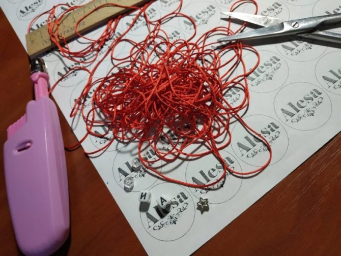 - Во-первых, нужно отмерять необходимую длину. Отрежьте шнурок в 4 раза длиннее запястья. Вам понадобится 3 отрезка этой длины.